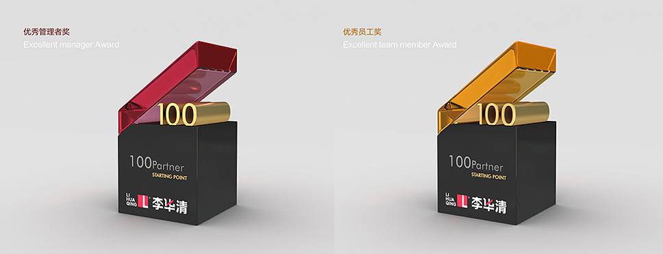獎(jiǎng)杯的階梯是由下方的100作為支撐,象征平臺(tái)的發(fā)展和進(jìn)取離不開100位合伙人的共同努力和付出。