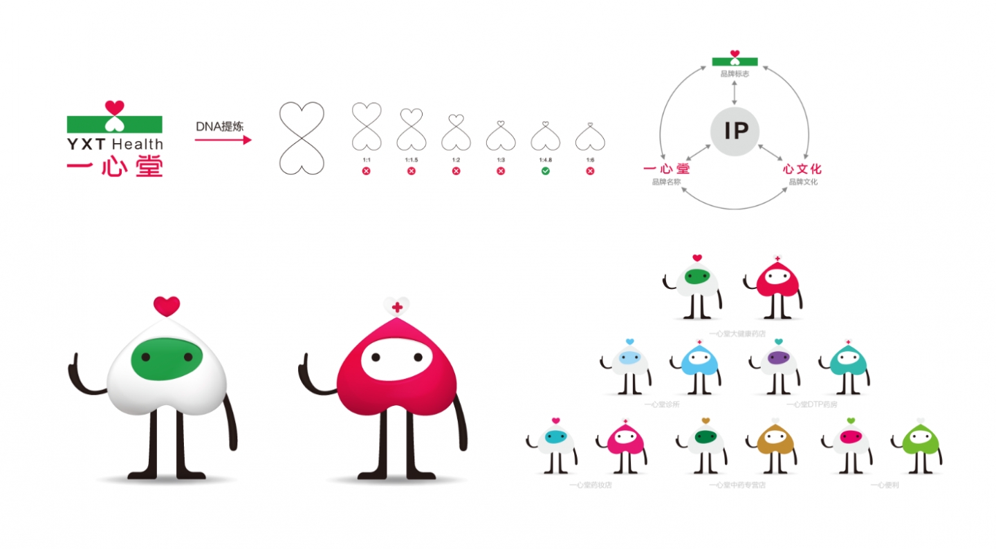 一心堂集團IP打造IP創意取自品牌原始基因“天地之心”,在IP的規劃上運用了一以貫之的品牌指導思想。以一心堂名字“一一和心心”為導向命名IP,使IP與品牌標志、名稱、心文化產生強關聯,簡單、直接,增強品牌記憶,降低傳播成本。同時IP在運營的過程中不斷累積品牌資產,反向賦能品牌,實現品牌與IP能量互動的集合效應,引爆業態發展。
