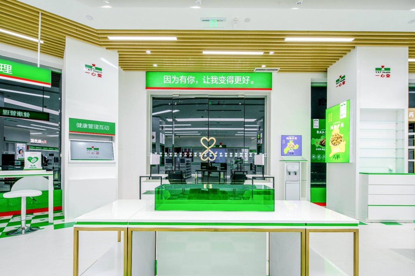 一心堂大健康藥店理念識別(統一價值觀):“因為有你,讓我變的更好。”